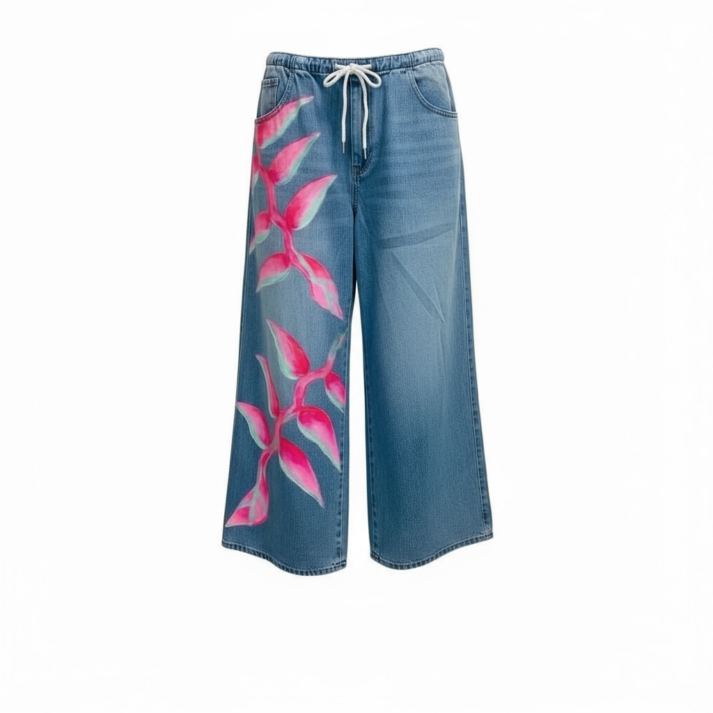 Paint on soft brand new vintage style extra wide leg tie denim.
