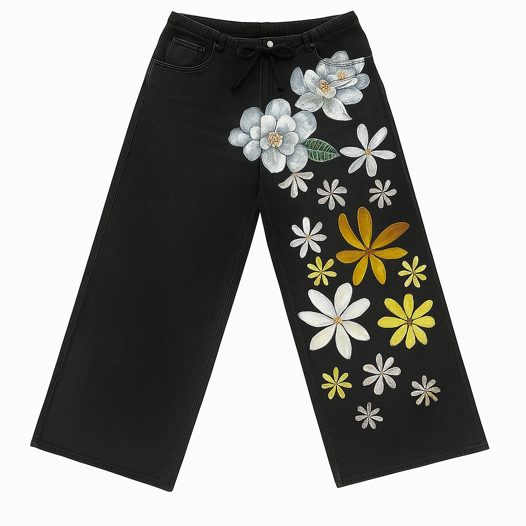 Select the blooms, the denim color, the size, and feel free to reach out with any additional requests.